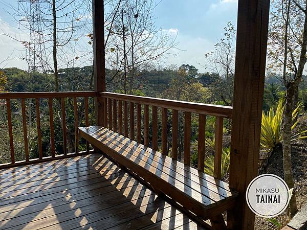 外面有放一些搖椅,可是上面那個遮應大概只有正中午才有用,然後地板的固定已經掉了,不能搖晃太大力,不然椅子會動,真的很可怕。(被椅子移動嚇到的事主本人)