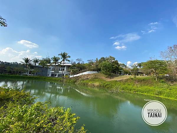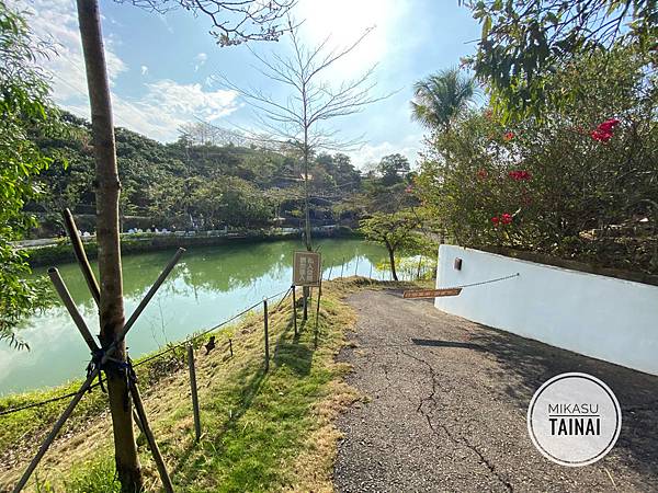 遠遠的裡面那一棟是他們的民宿,等武漢肺炎過去我再去住看看跟大家分享;這邊的湖水有點綠,倒是沒有說很美。